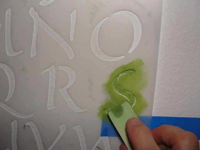 I do all of the ivy in a casual, flowing style, turning the stencil